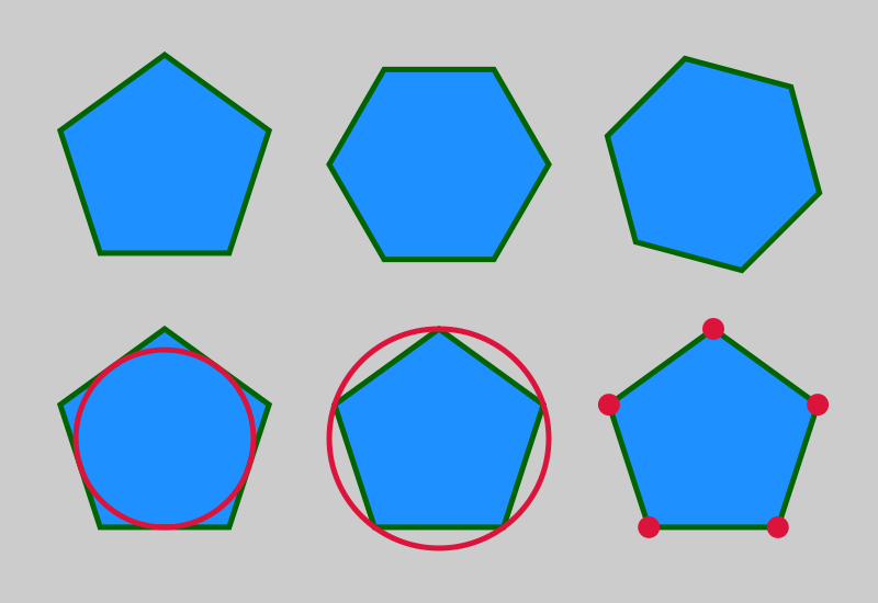 This code draws the same pentagon as before, but with an outer circle (bottom centre of the main image):