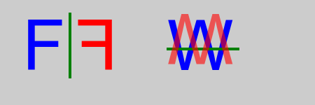 First, we draw a large letter F in blue. We also draw a vertical line at x = 100. This is the line we will mirror across.