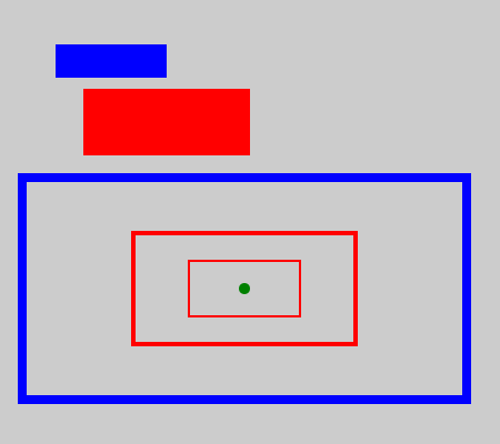 We draw a rectangle outlined in blue. The green dot is actually right at the centre of the rectangle.