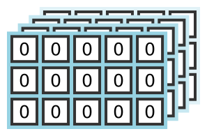 A 3 dimensional array has rank 3. It is shown here as a stack of matrices
