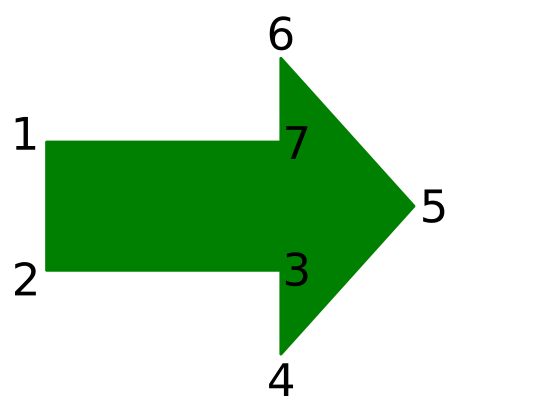 And so on. To draw the arrow, we just join the points to make a polygon. Here is a function that draws an arrow: